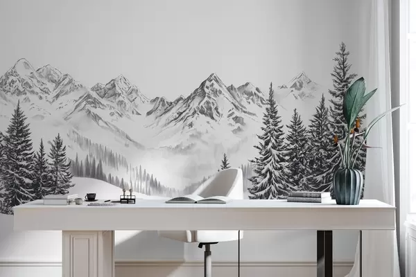 Fototapety Alpské hory na sněhu, styl tužky, minimalismus Č. w02352