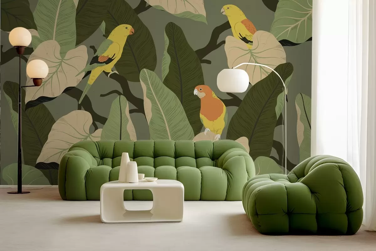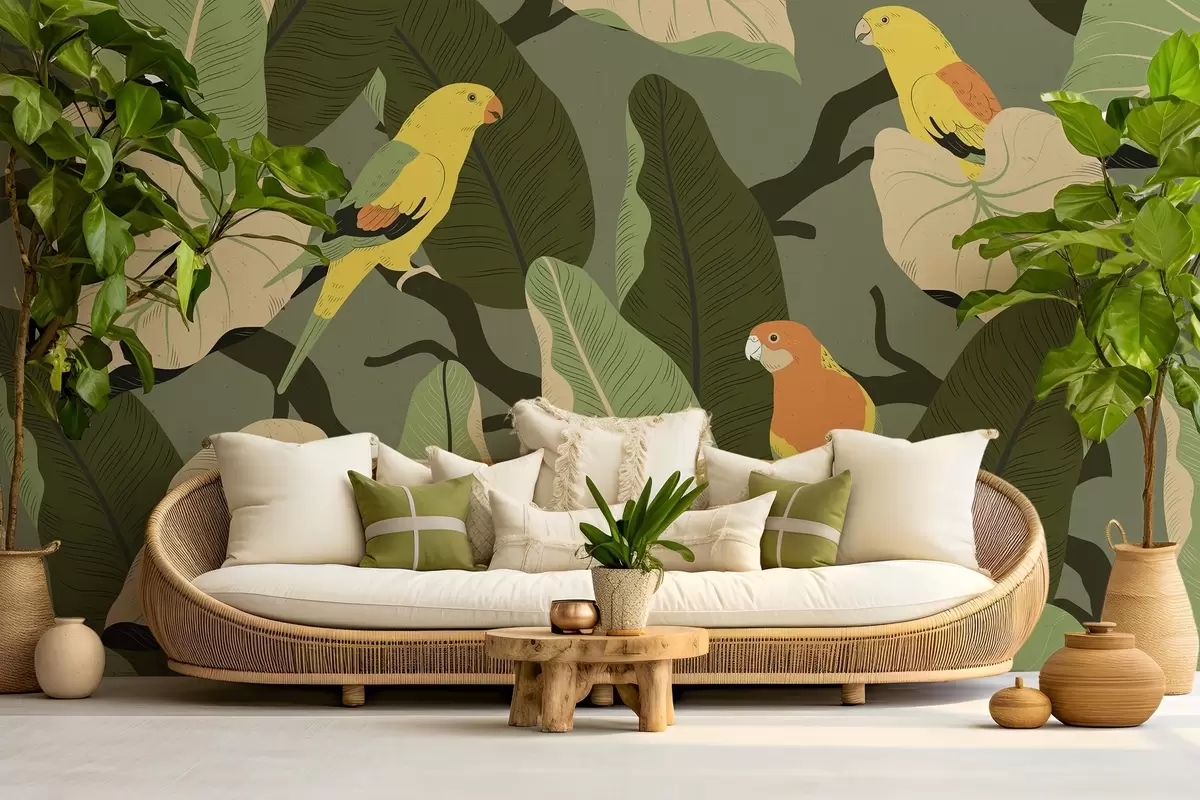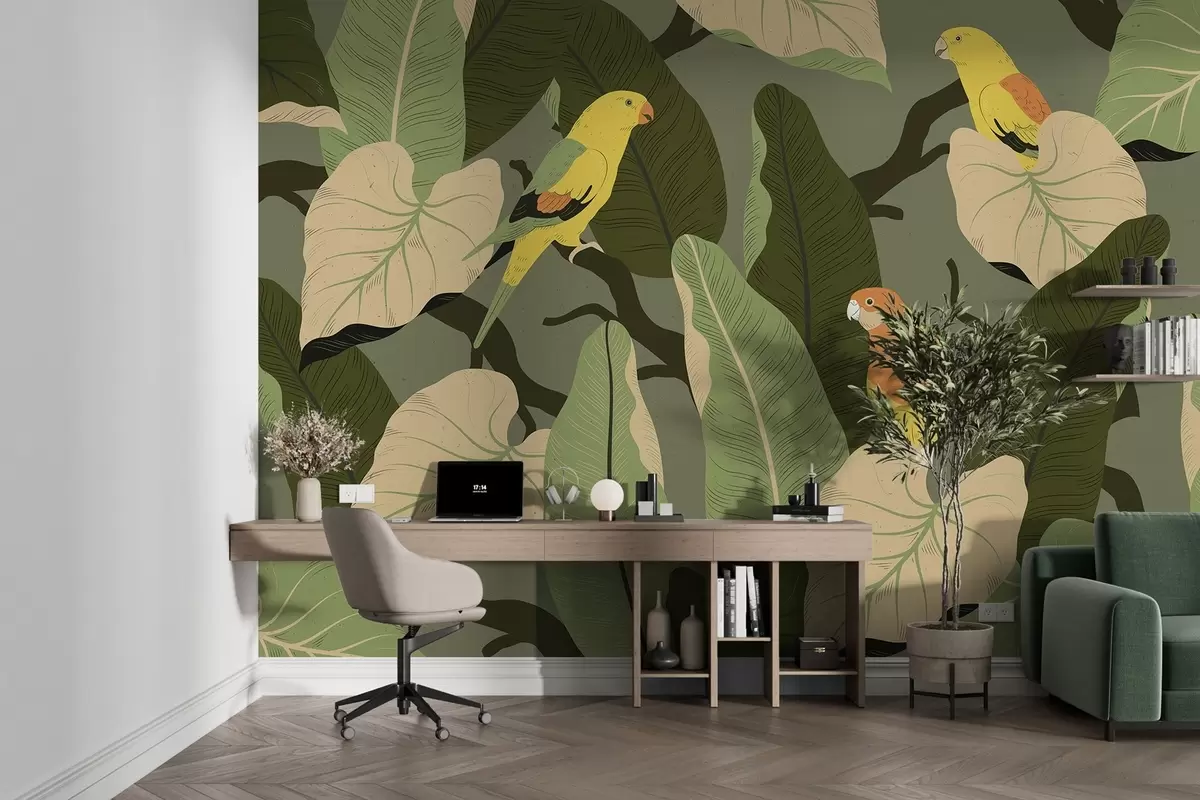 Fototapety tropické listy s papoušky Č. w02402