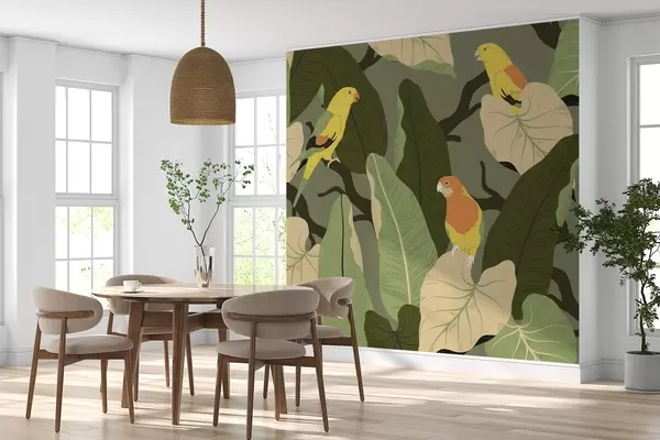 Fototapety tropické listy s papoušky Č. w02402