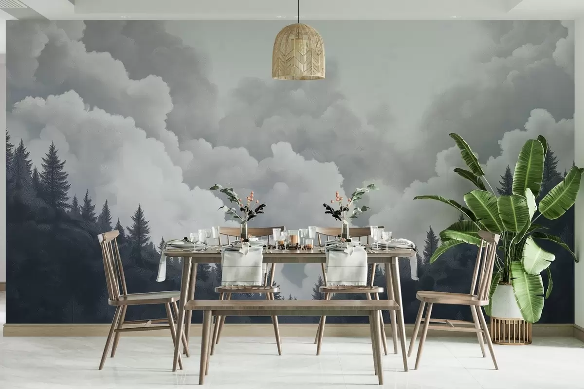 Fototapety Husté mraky nad lesem namalované olejovými barvami Č. w02411