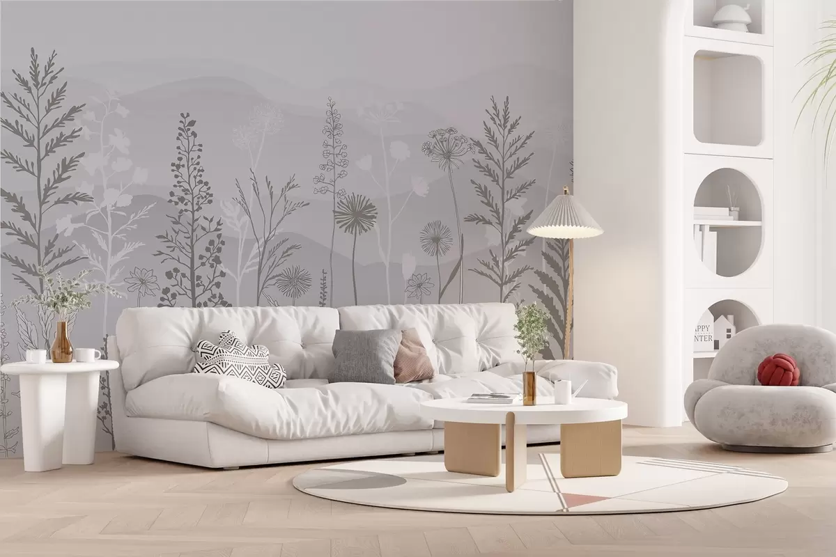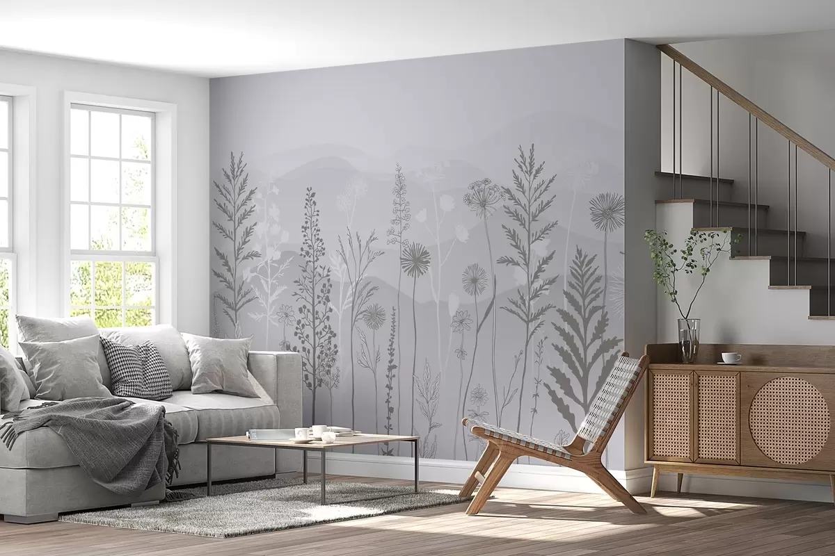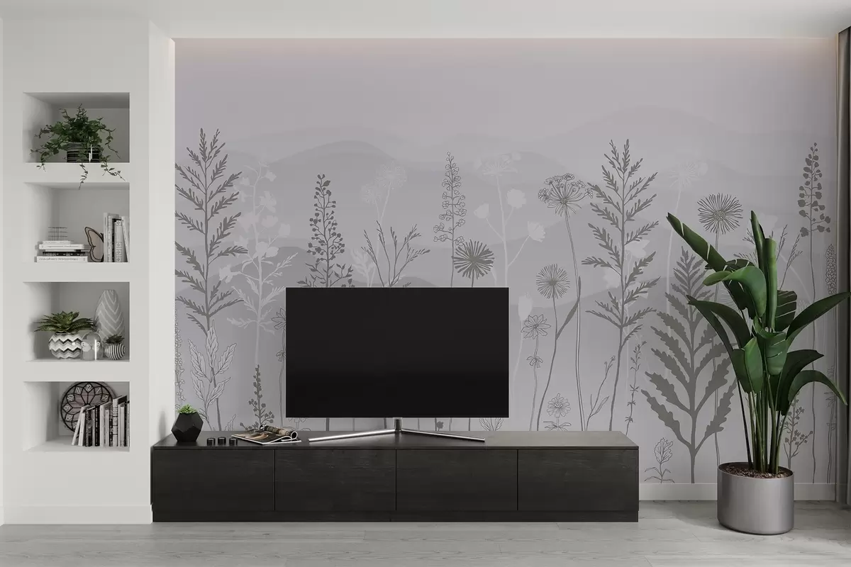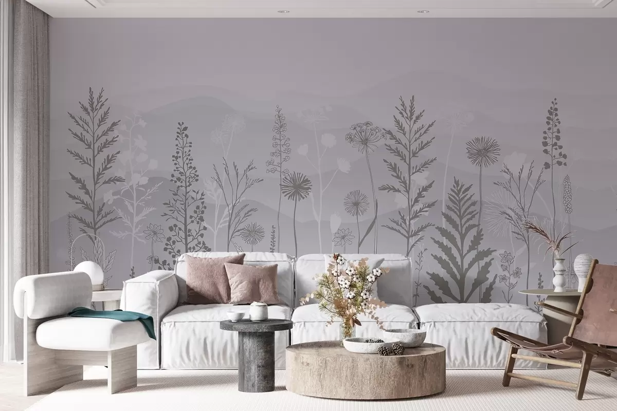 Fototapety tapety v ekologickém stylu, divoké květiny v šedých tónech Č. w02443