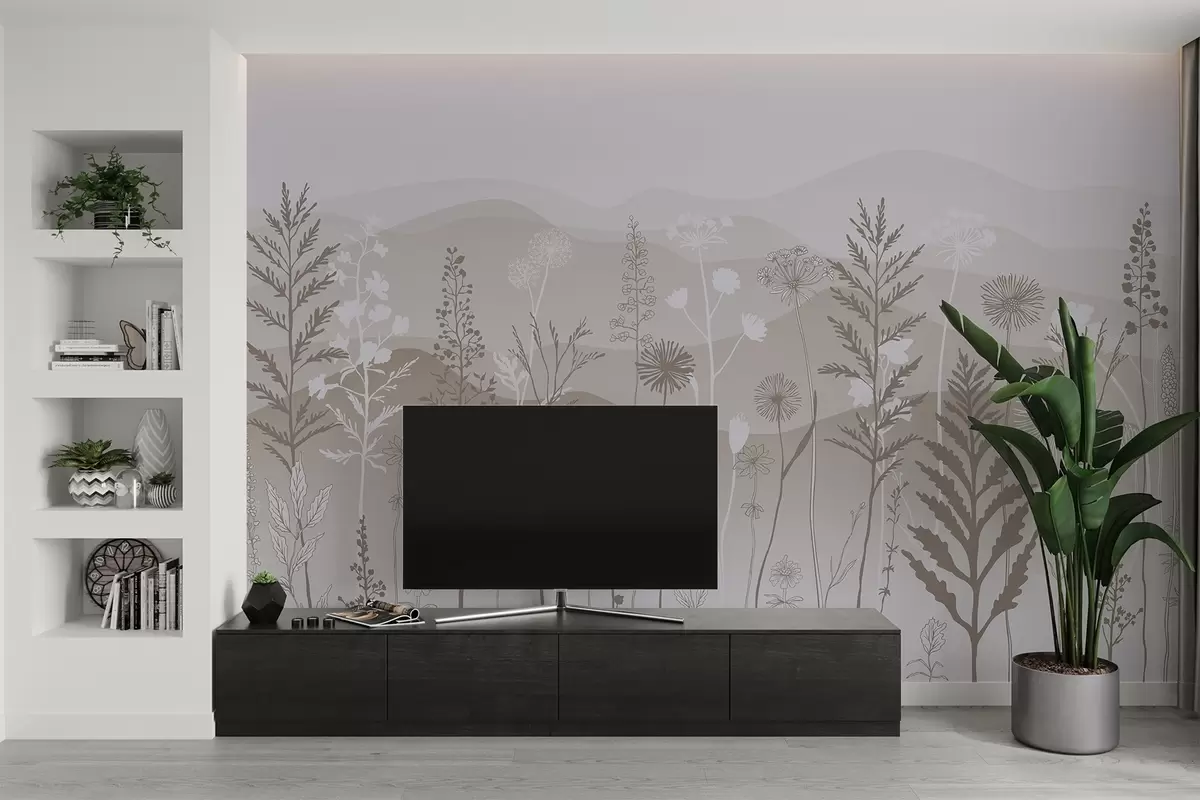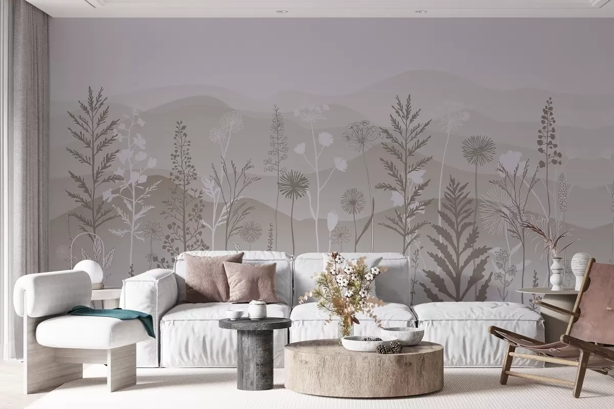 Fototapety tapety v ekologickém stylu, divoké květiny ve světle hnědých tónech Č. w02443v1