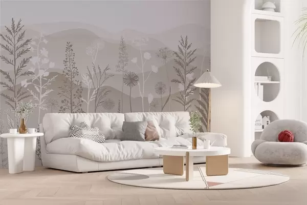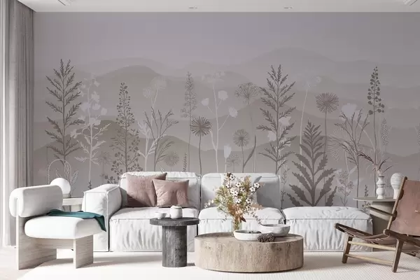 Fototapety tapety v ekologickém stylu, divoké květiny ve světle hnědých tónech Č. w02443v1