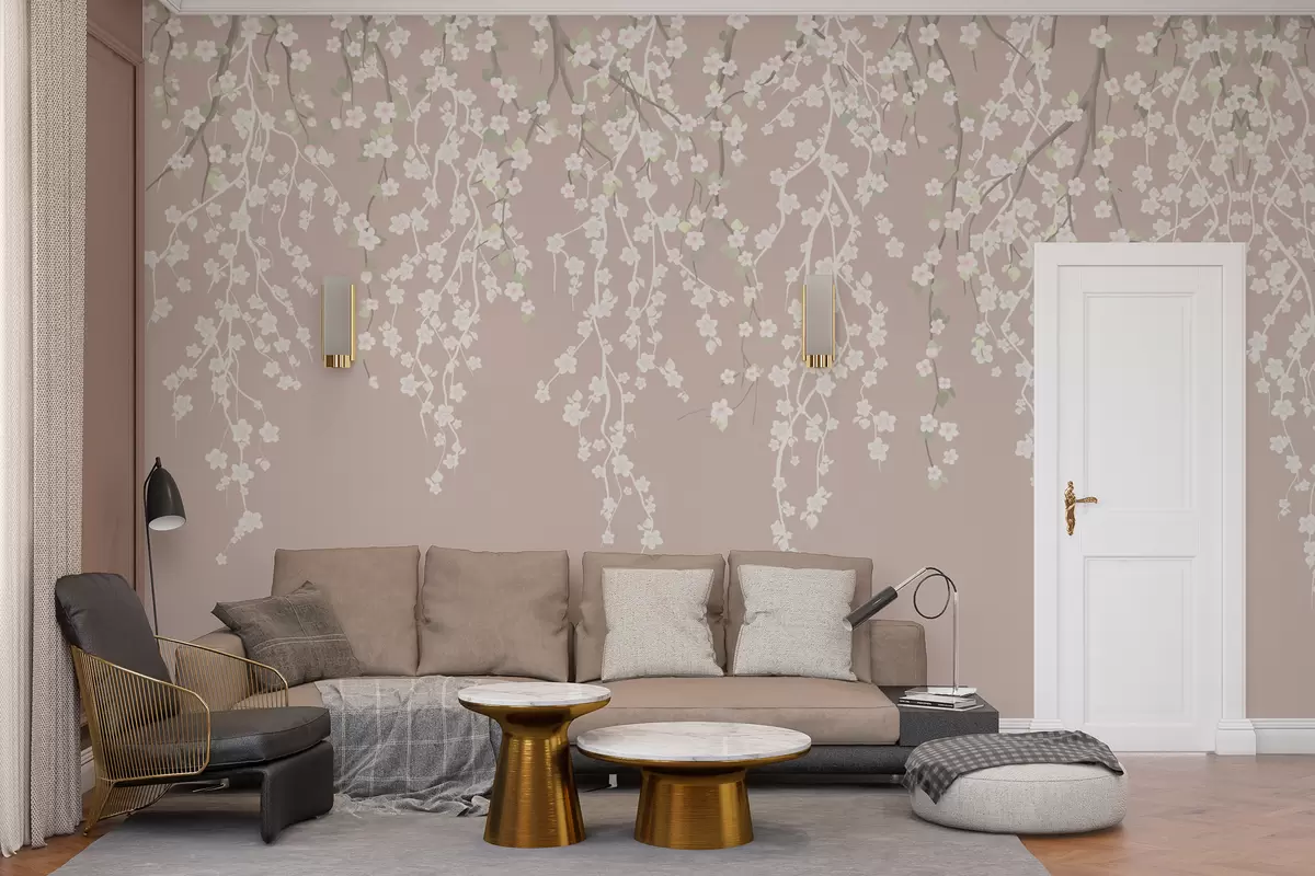 Fototapety Splývající jemné větve s květy na pastelovém pozadí Č. w02479v2