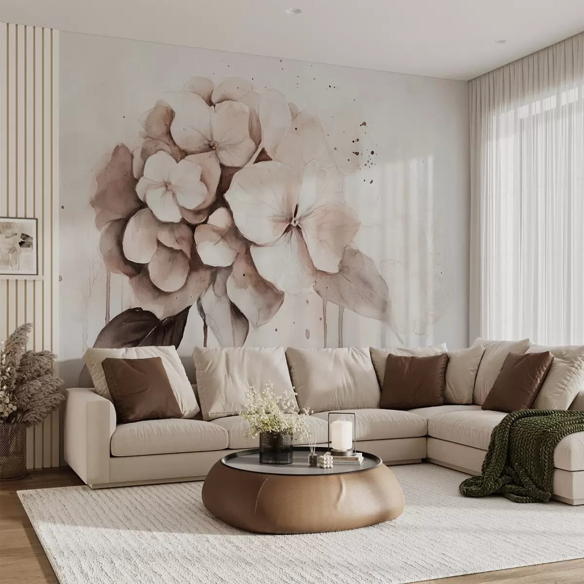 Fototapety Kresba hortenzie, akvarel, béžové barvy Č. w02483
