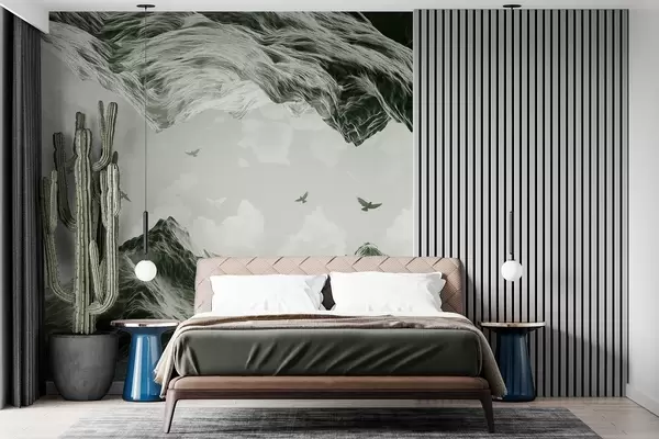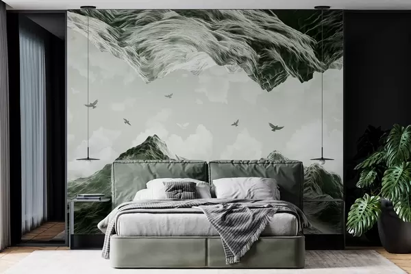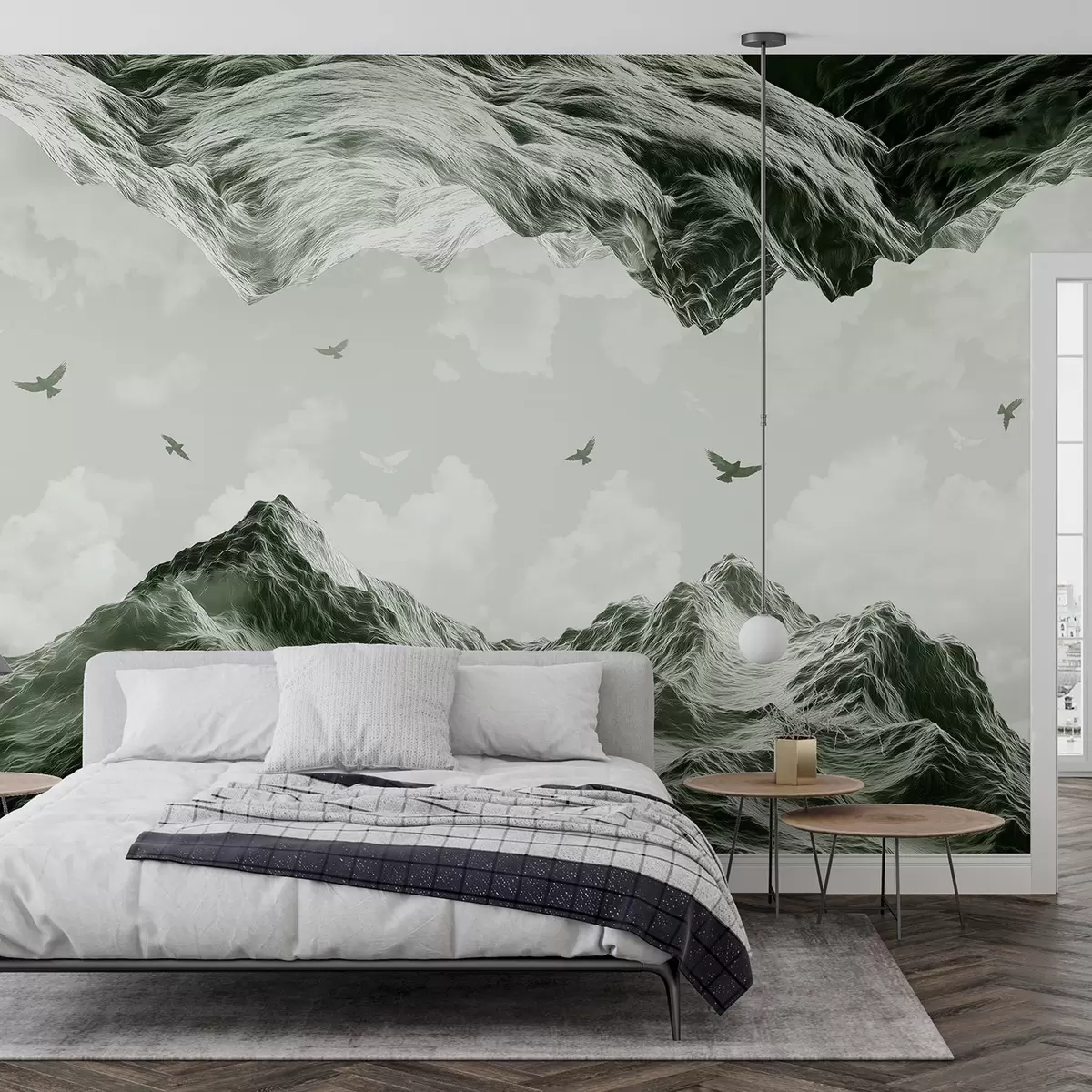 Fototapet Hory krajina, realismus, létající ptáci, příroda, mraky, zelené barvy w02514v3