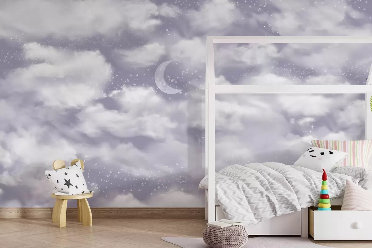 Fototapety Hvězdné nebe s měsícem a mraky, zasněné, éterické, jemné fialové barvy Č. w02515v4