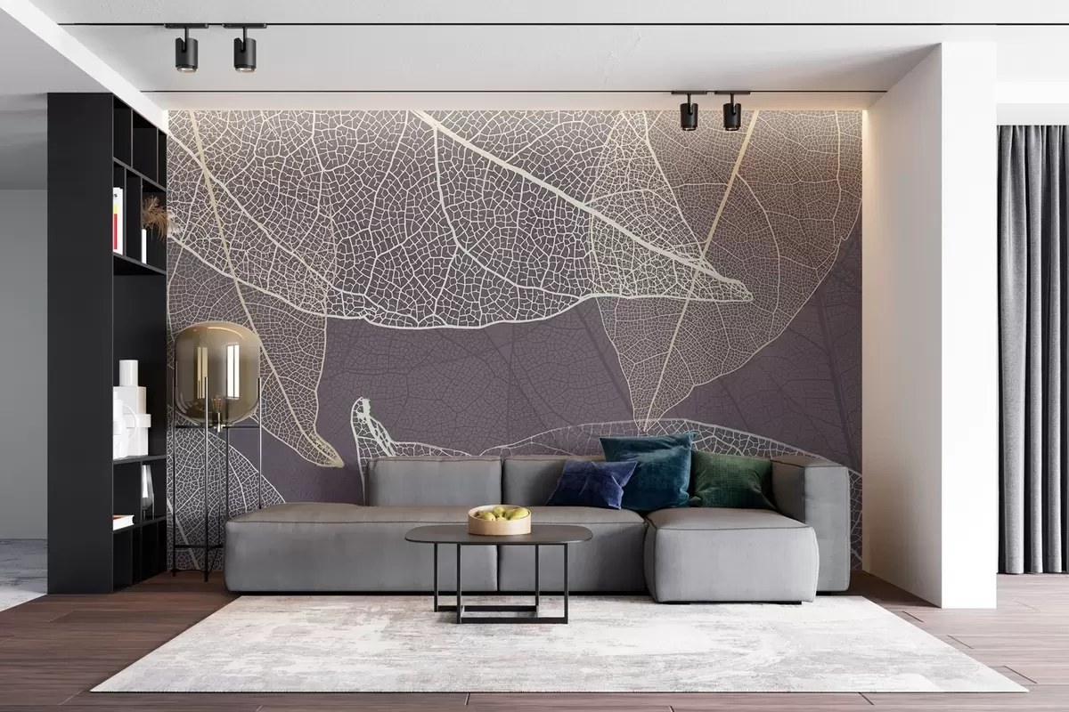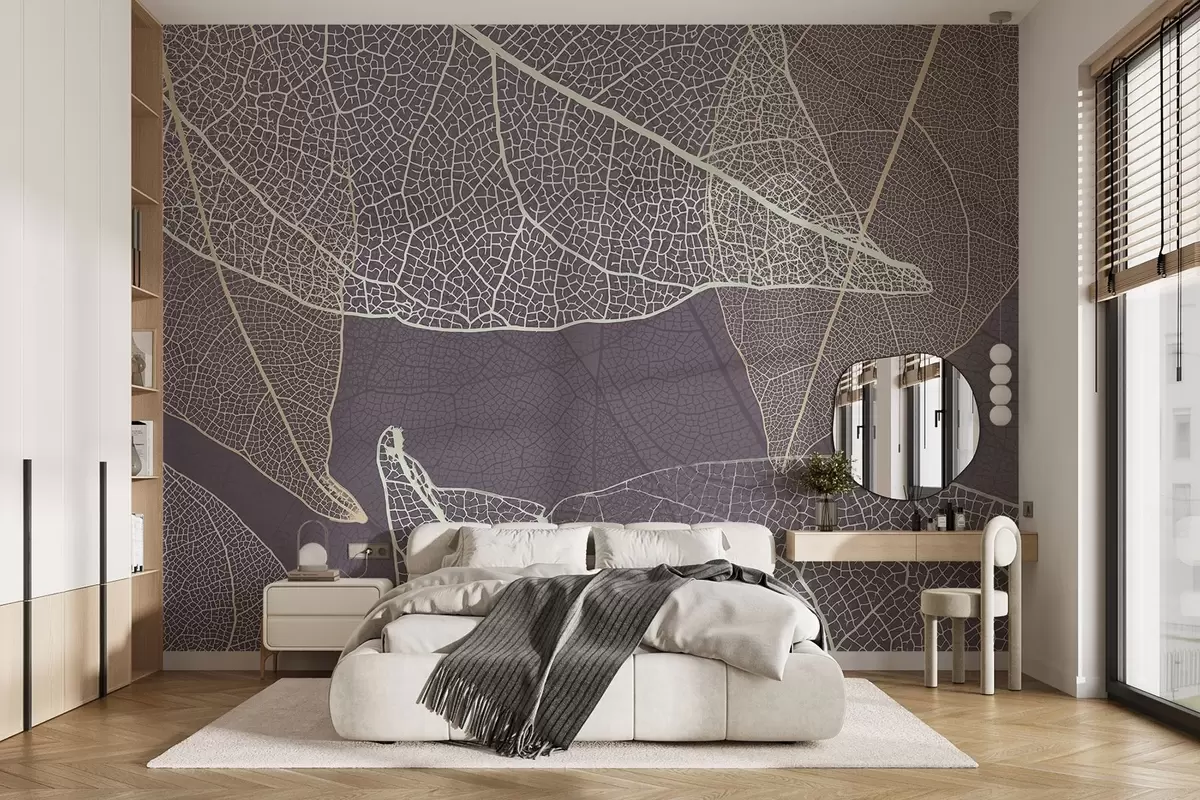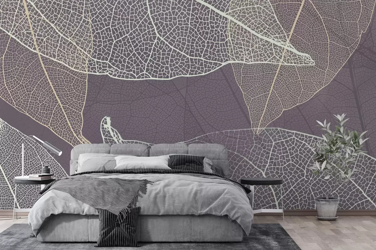 Fototapety detailní záběr listů s žilkami ve fialově šedých odstínech Č. w02520v3