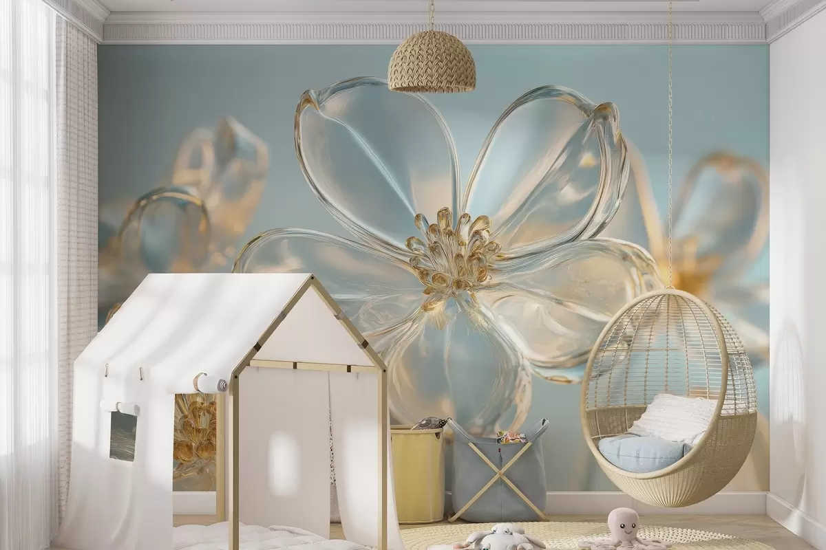 Fototapety velké skleněné květy v modrých tónech Č. w02521