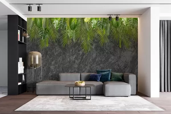 Fototapety tropické listy na pozadí imitace kamene Č. w02547