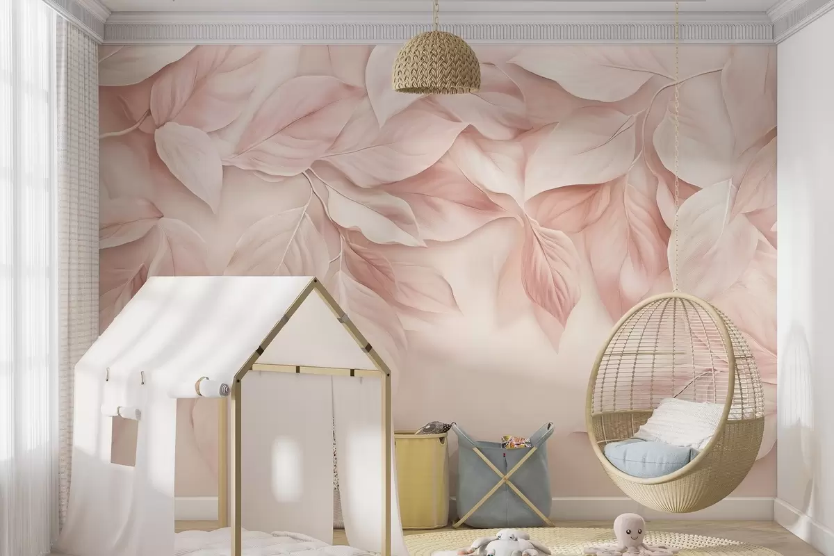 Fototapety jemné růžové listy do dívčího pokoje Č. w02549