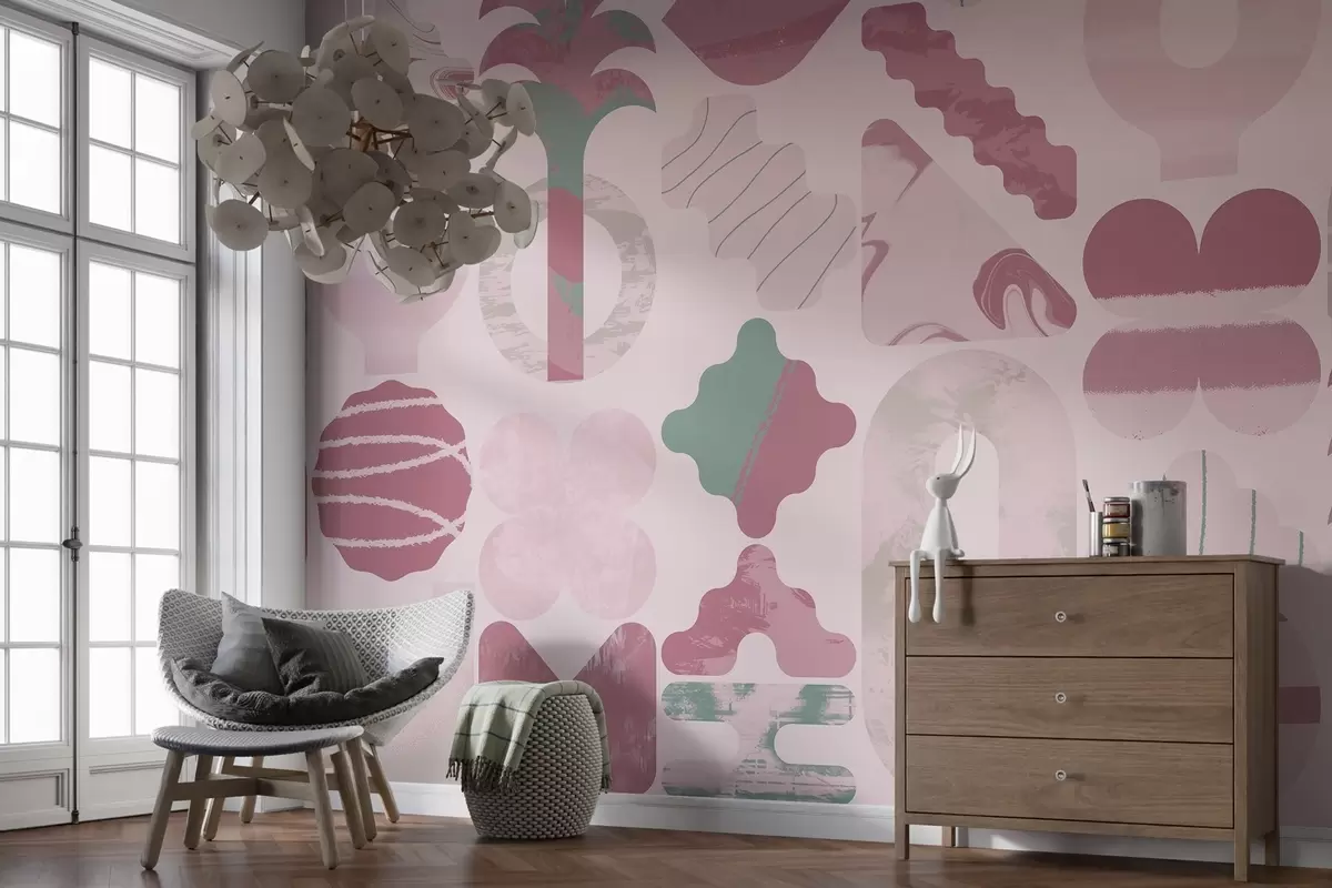 Fototapety různé zajímavé tvary, moderní geometrie v růžových barvách Č. w02550