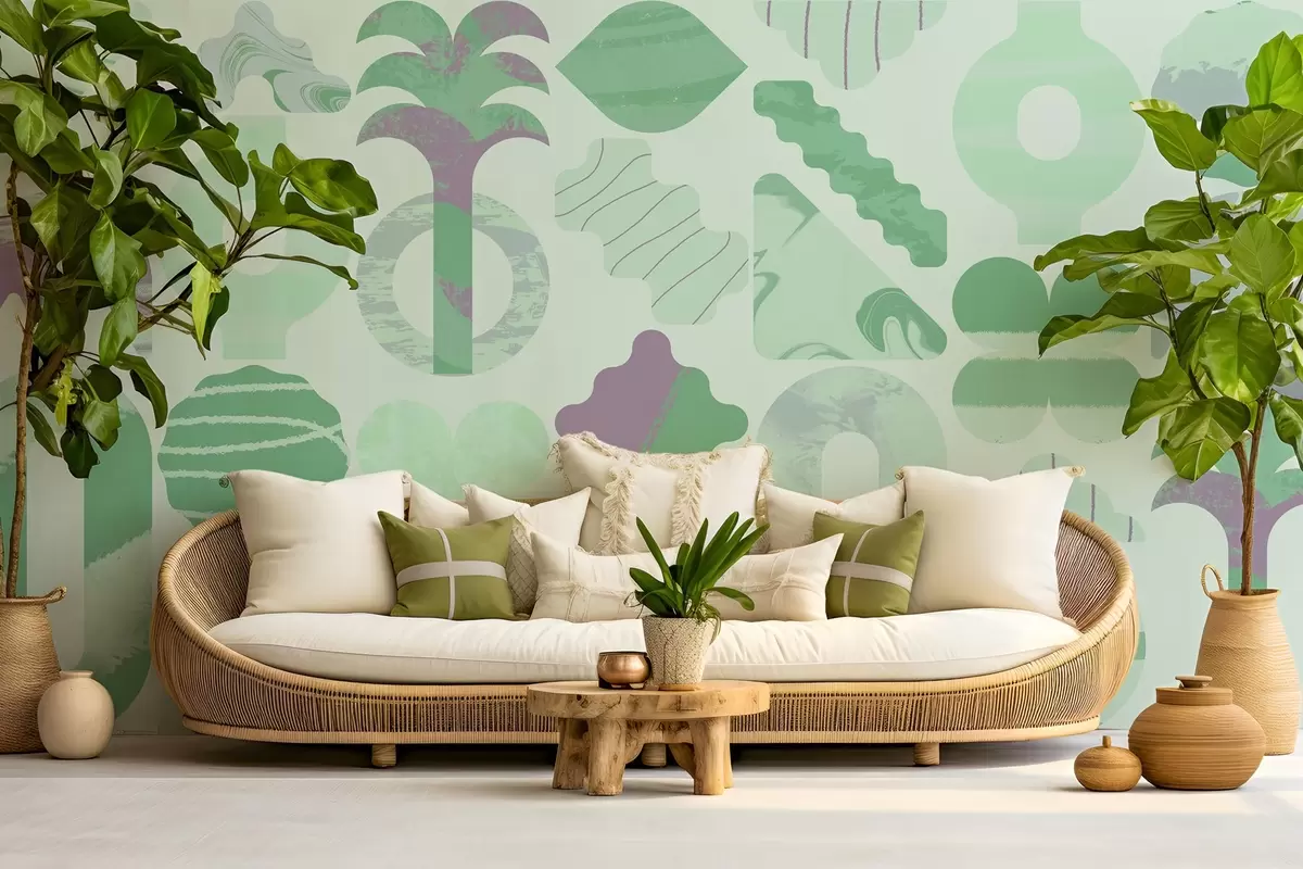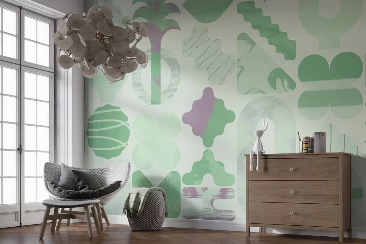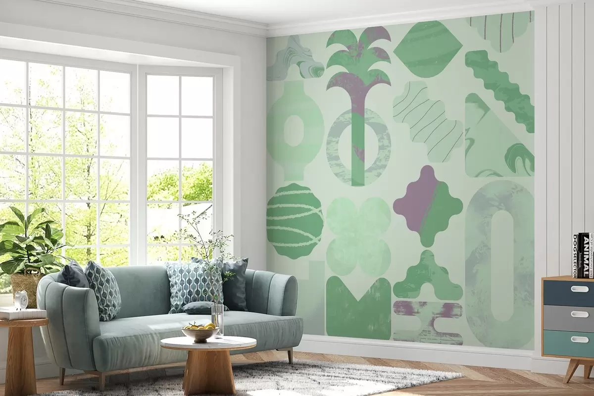 Fototapety různé zajímavé tvary, moderní geometrie v zelených barvách Č. w02550v2