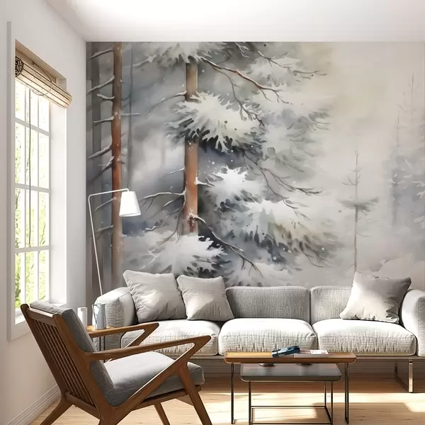 Fototapety Zasněžený les imitující akvarel Č. w02591