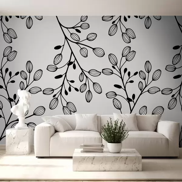 Fototapety malované větvičky na šedém pozadí Č. w02665v1