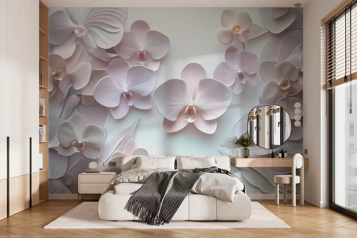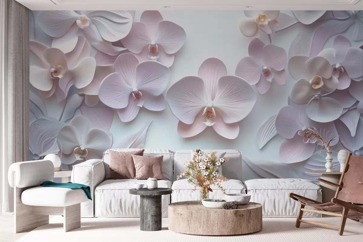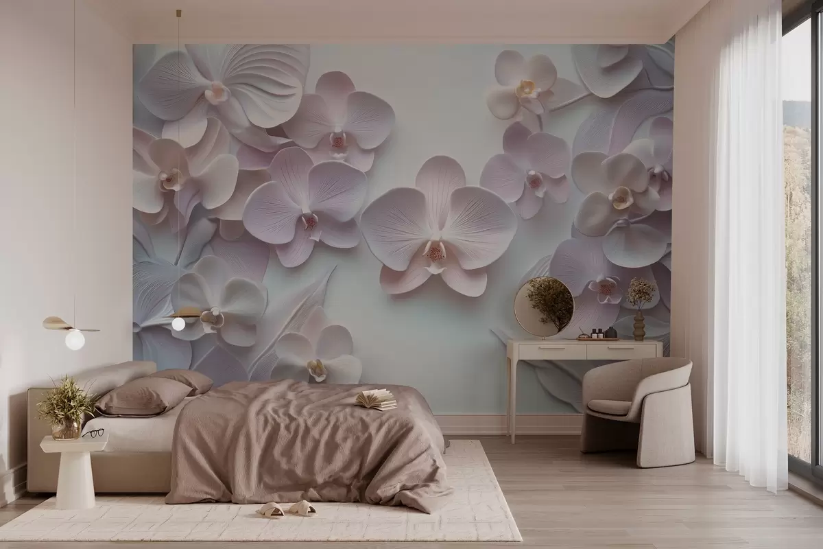 Fototapety Jemné květy archidie ve světlých barvách s 3D imitací Č. w02912