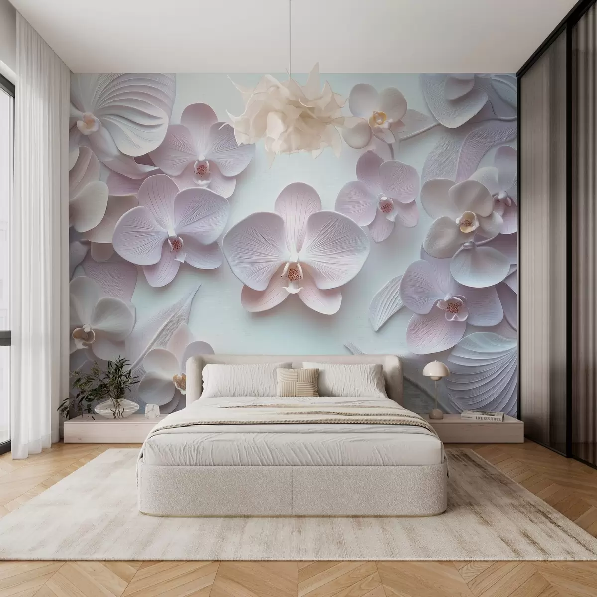 Fototapety Jemné květy archidie ve světlých barvách s 3D imitací Č. w02912