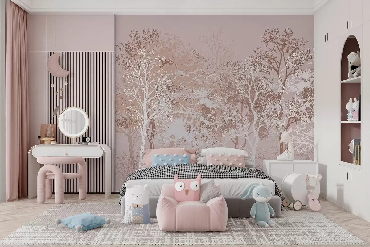 Fototapety Stromy v lese, minimalismus, příroda, béžová paleta barev Č. w02930