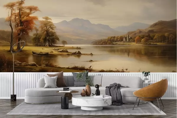 Fototapety Akvarelová krajina malovaná v teplých barvách Č. w02971