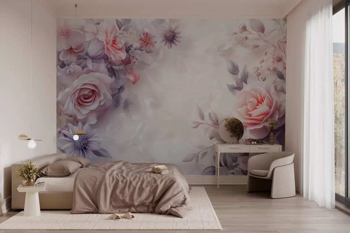 Fototapety jemné růže v růžové a perleťové barvě Č. w03025