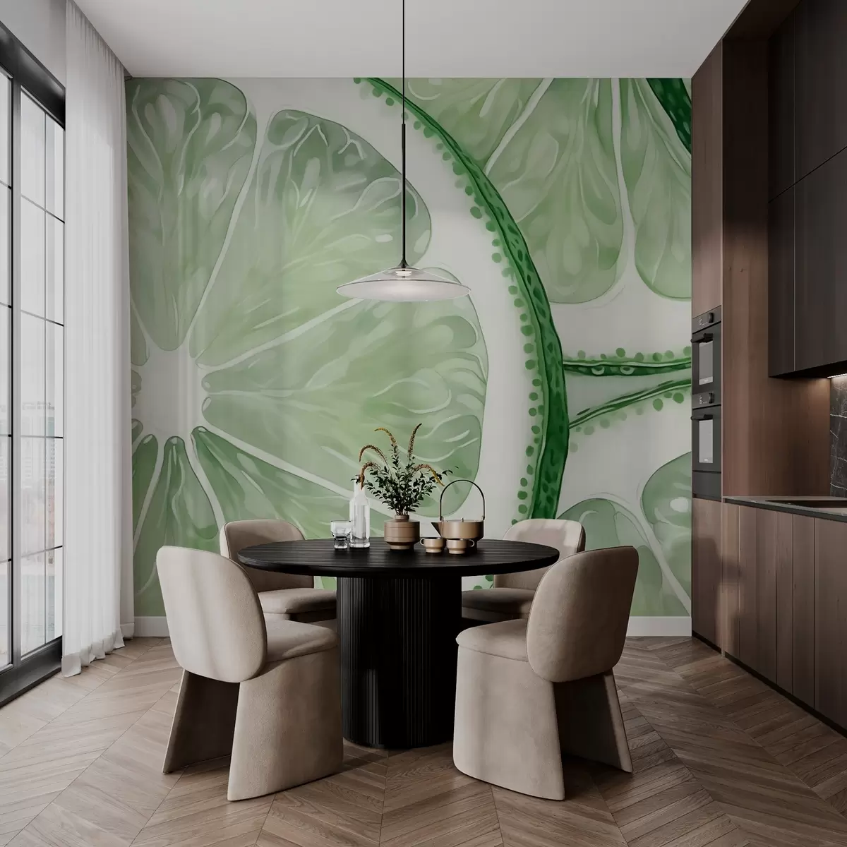 Fototapety Citrusové kruhy imitující akvarelově zelený odstín Č. w03026