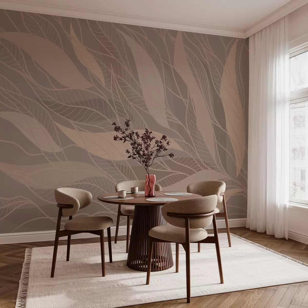 Fototapety abstraktní listy v béžových a teplých barvách Č. w03117