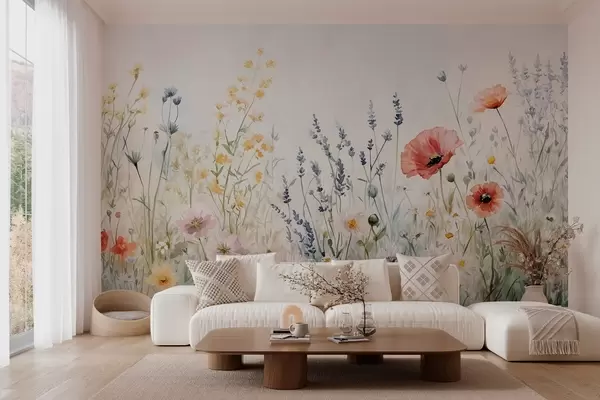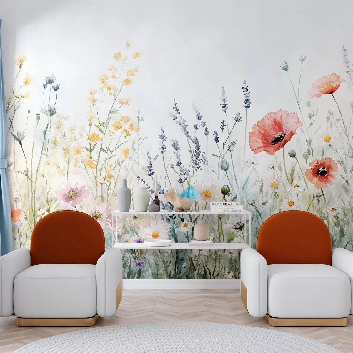 Fototapety divoké květiny a máky v technice tahů Č. w03281