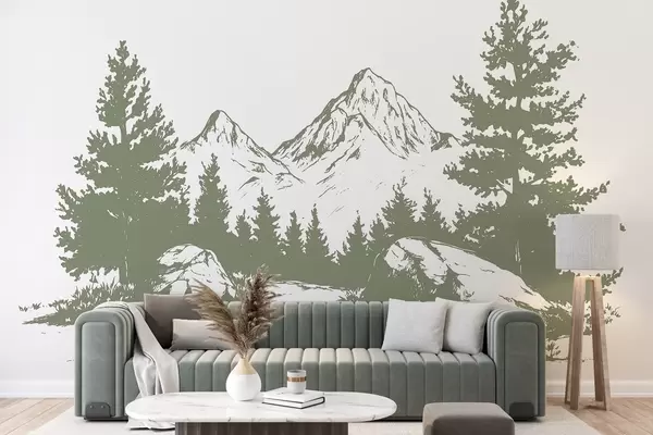 Fototapety Alpy, hory s lesem, liniová kresba, zelená barva Č. w03342v1