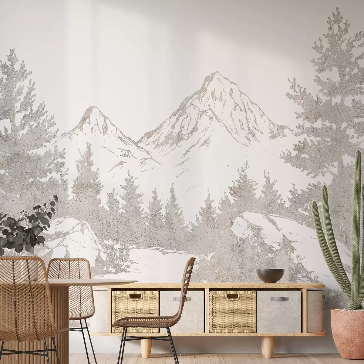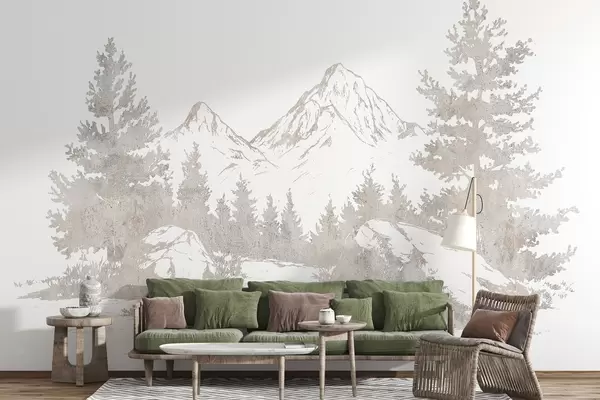 Fototapet Alpy, hory s lesem, liniová kresba, přírodní barvy w03343