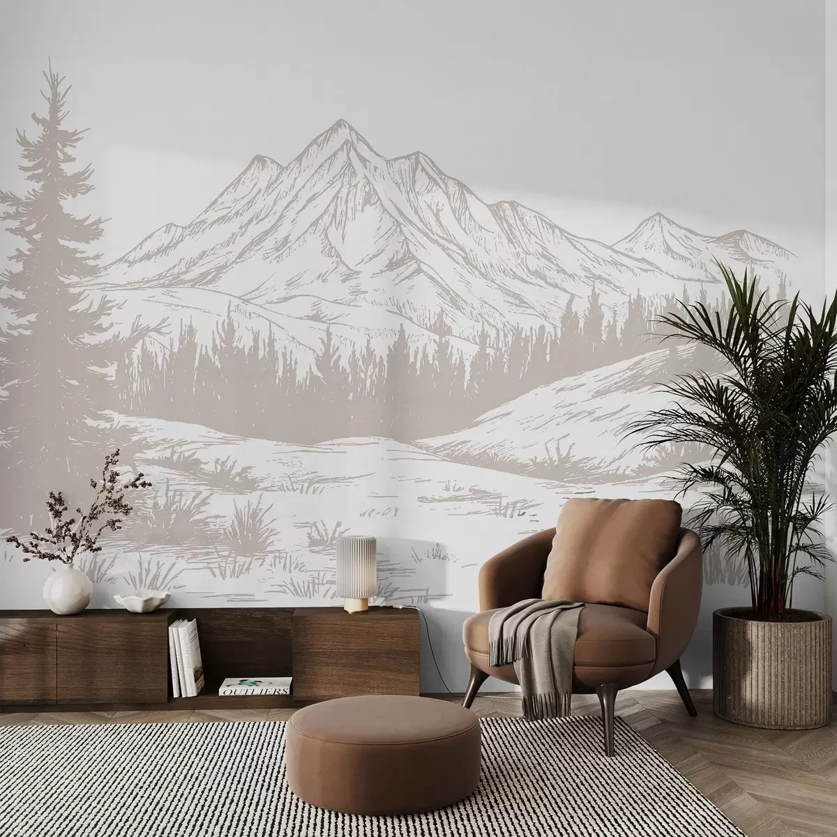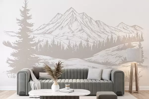 Fototapety Horská krajina s borovicemi, les, příroda, jemná béžová barva Č. w03344v3