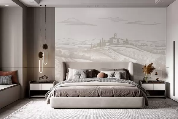 Fototapety Toskánsko krajina, Itálie, vinice, příroda, starý hrad, béžové barvy Č. w03349
