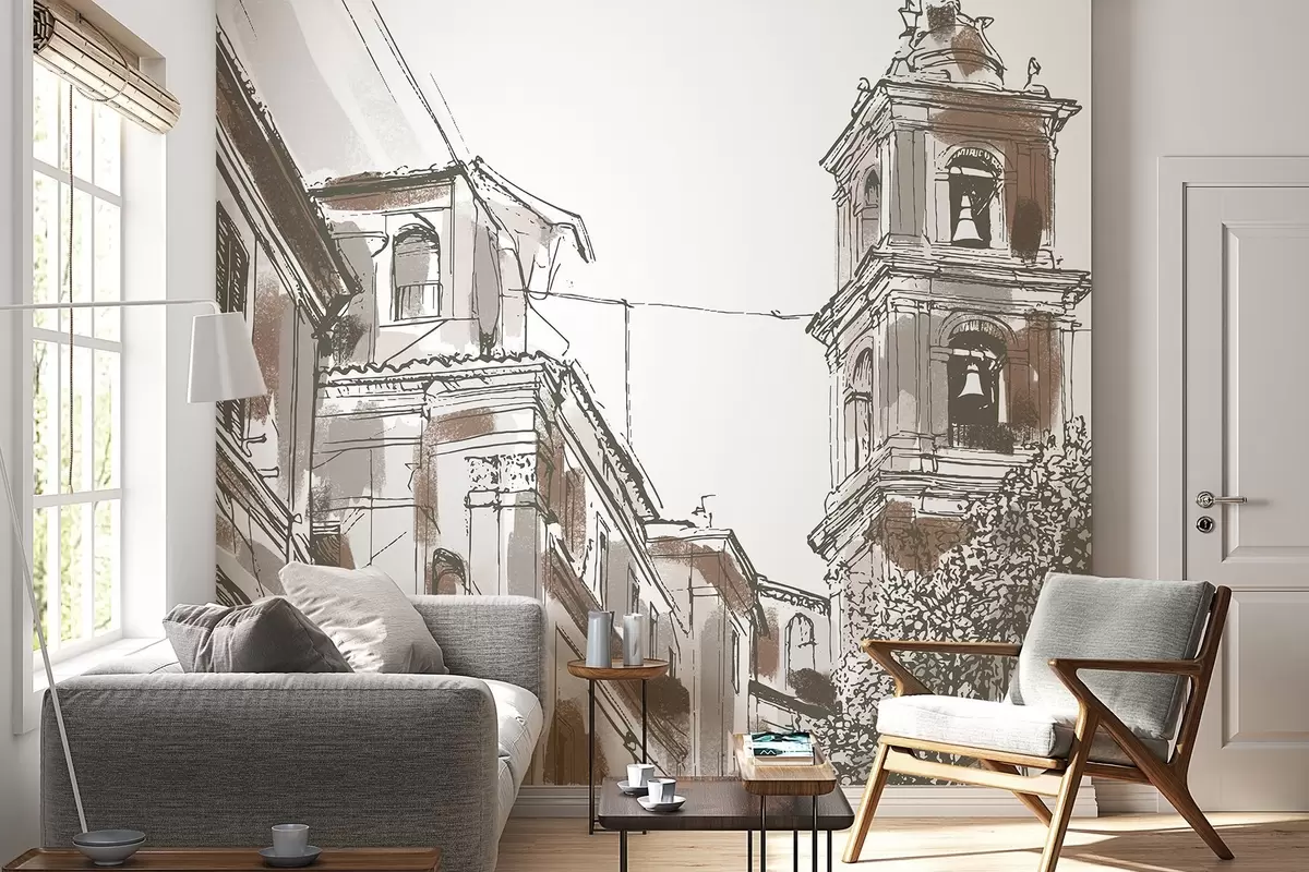 Fototapety Středomořská ulice, kaple, architektura, béžová a hnědá barva Č. w03350v1