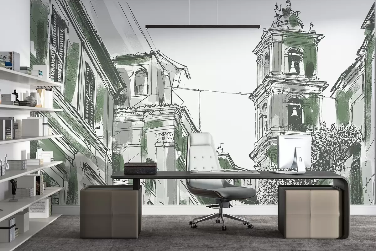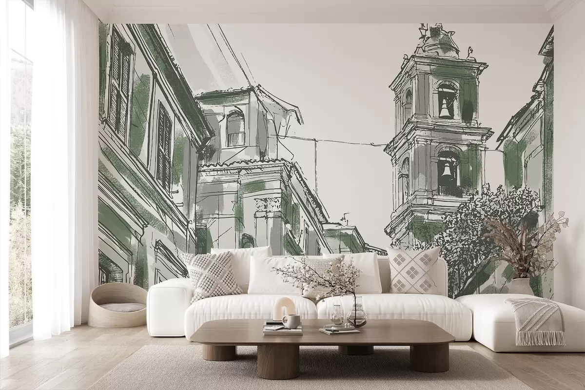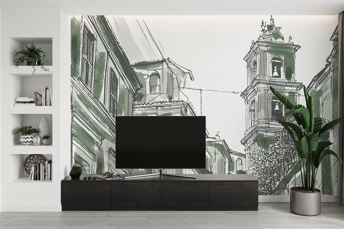 Fototapety Středomořská ulice, kaple, architektura, šedá a zelená barva Č. w03350v2