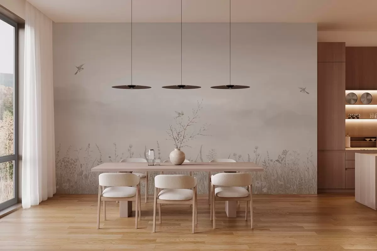 Fototapety Divoké květiny a mlhavá obloha v béžových tónech Č. w03391v2