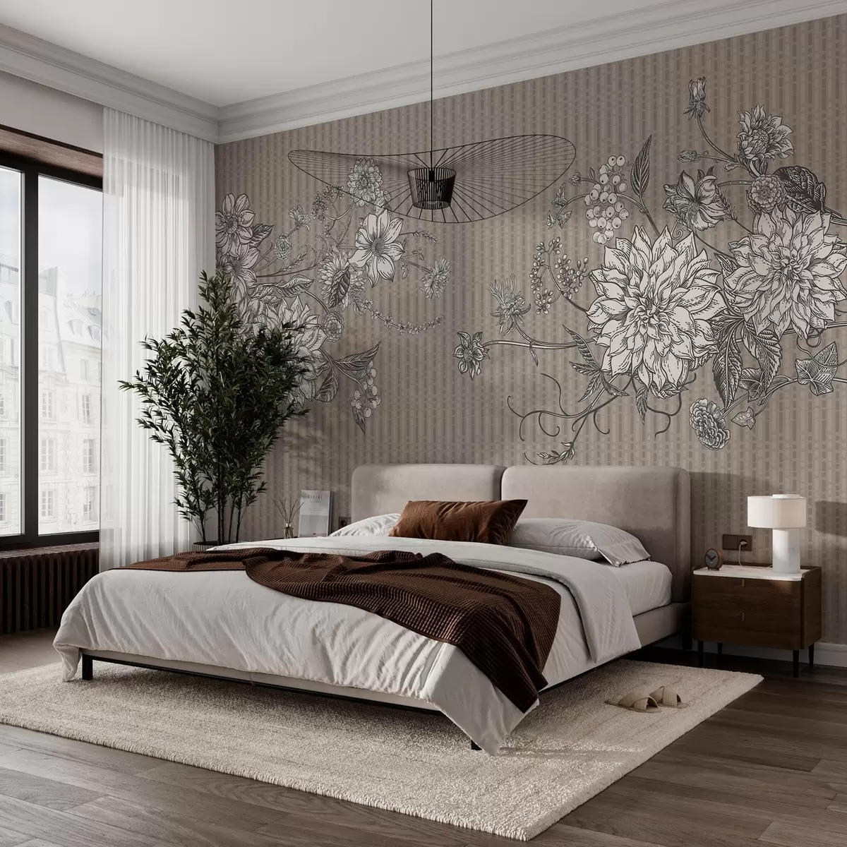 Fototapety Grafické květiny na matném pozadí v béžových tónech Č. w03395
