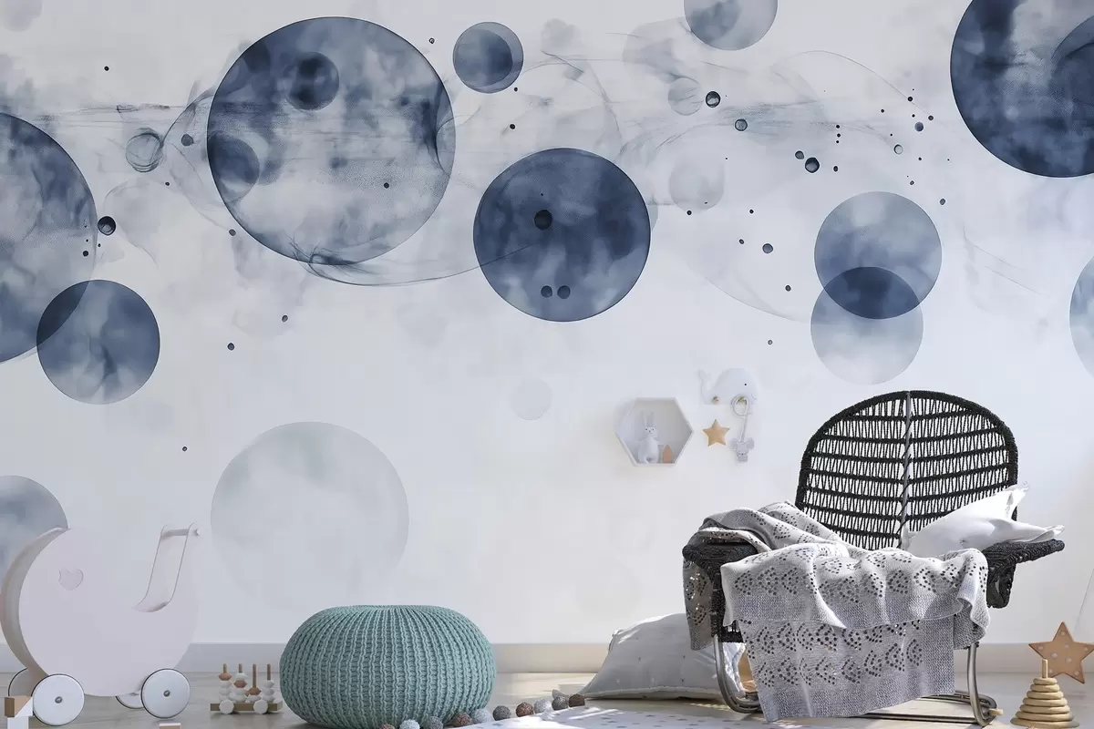 Fototapety Akvarelový styl kruhy, abstrakce, éterické, tekuté umění, šedé barvy Č. w03405