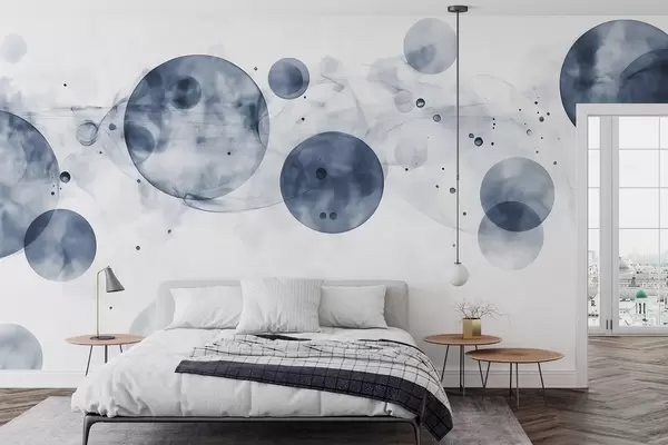 Fototapety Akvarelový styl kruhy, abstrakce, éterické, tekuté umění, šedé barvy Č. w03405
