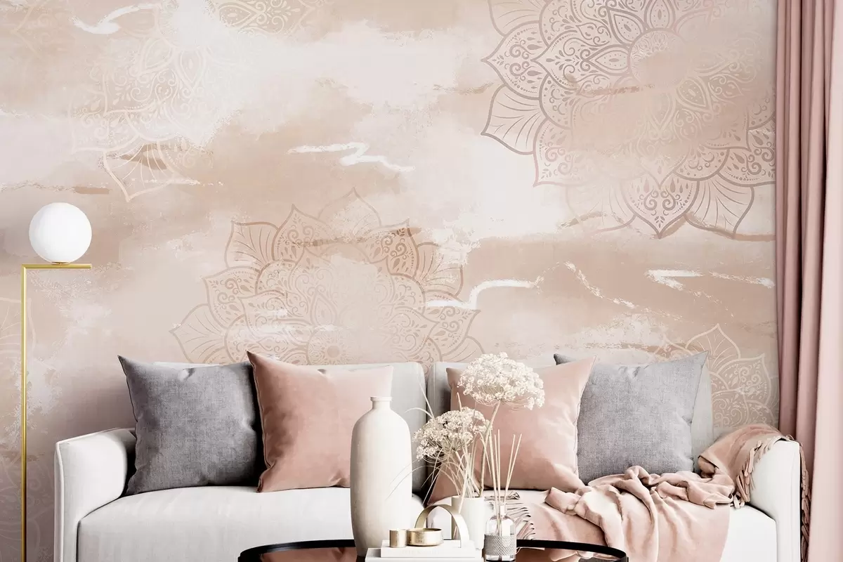 Fototapety Mandaly na pastelovém pozadí, živé tahy štětcem, béžové barvy Č. w03409