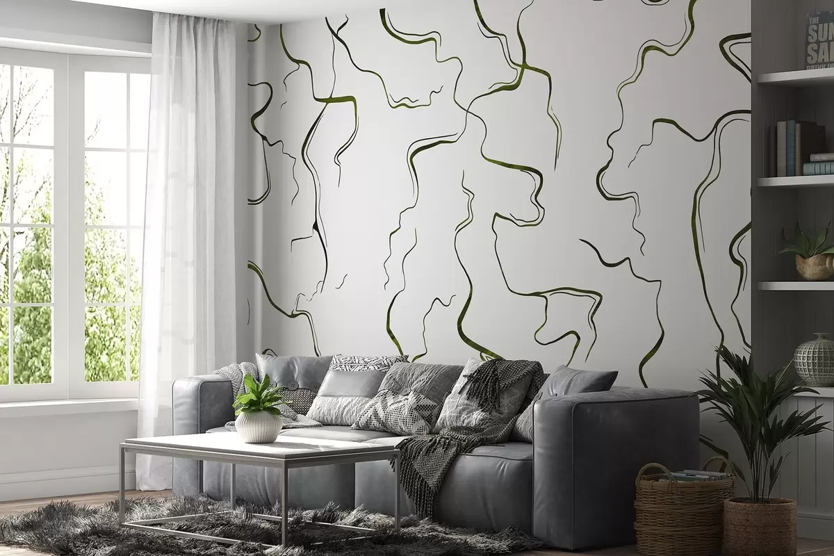 Fototapety Geometrické linie, inkoustový styl, abstrakce, zelené barvy Č. w03436