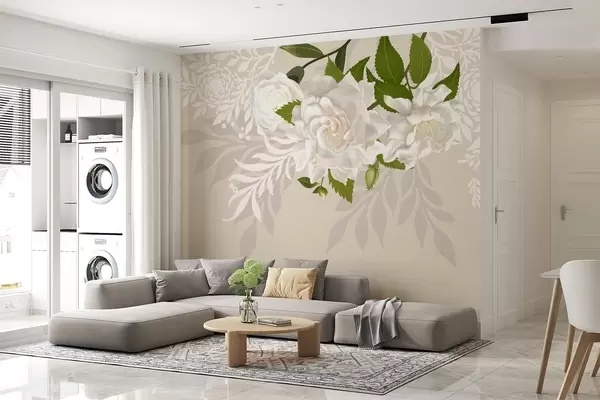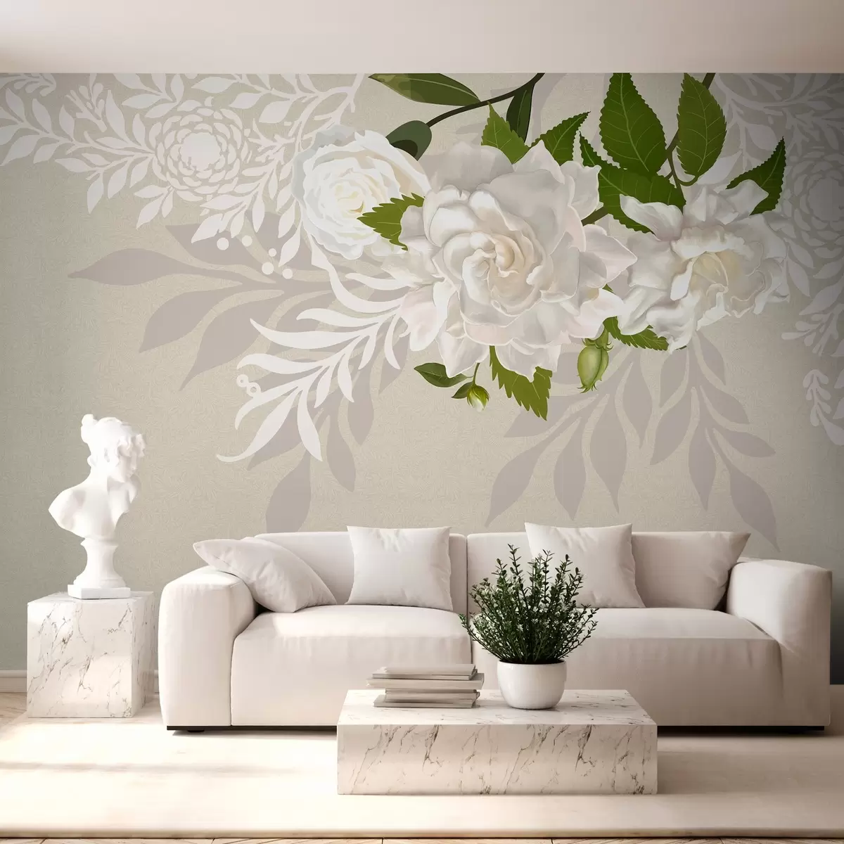 Fototapety bílé růže na béžovém vzorovaném pozadí Č. w03453