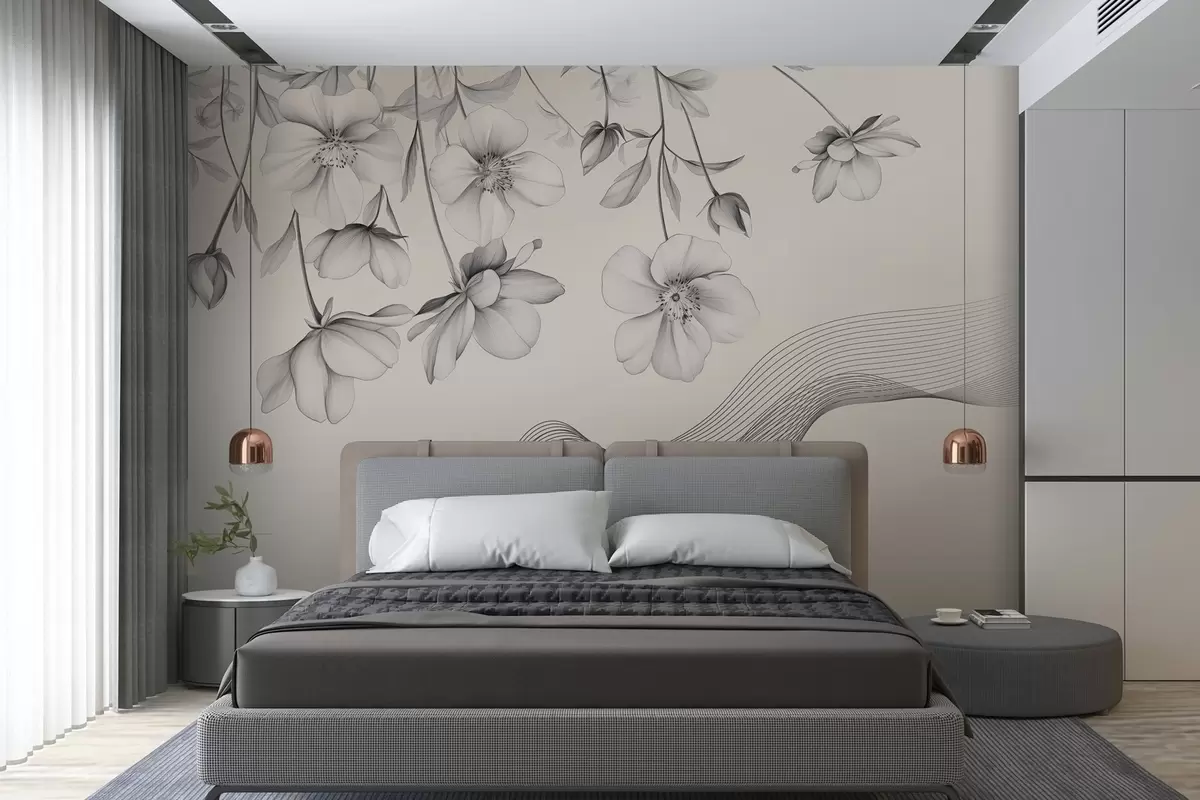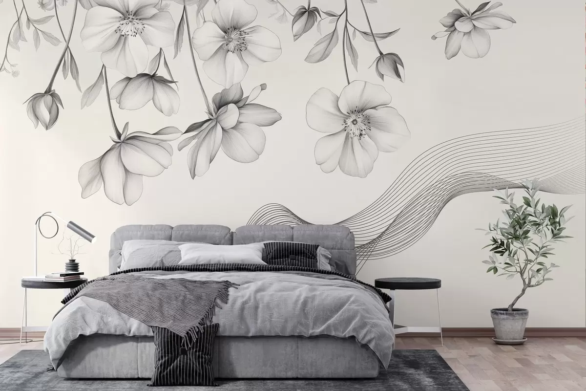 Fototapety grafické květiny a linie na světlém pozadí Č. w03454