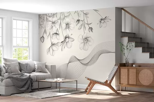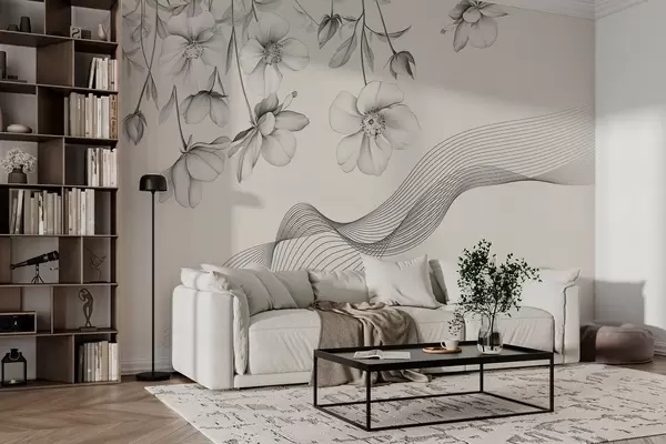 Fototapety grafické květiny a linie na světlém pozadí Č. w03454