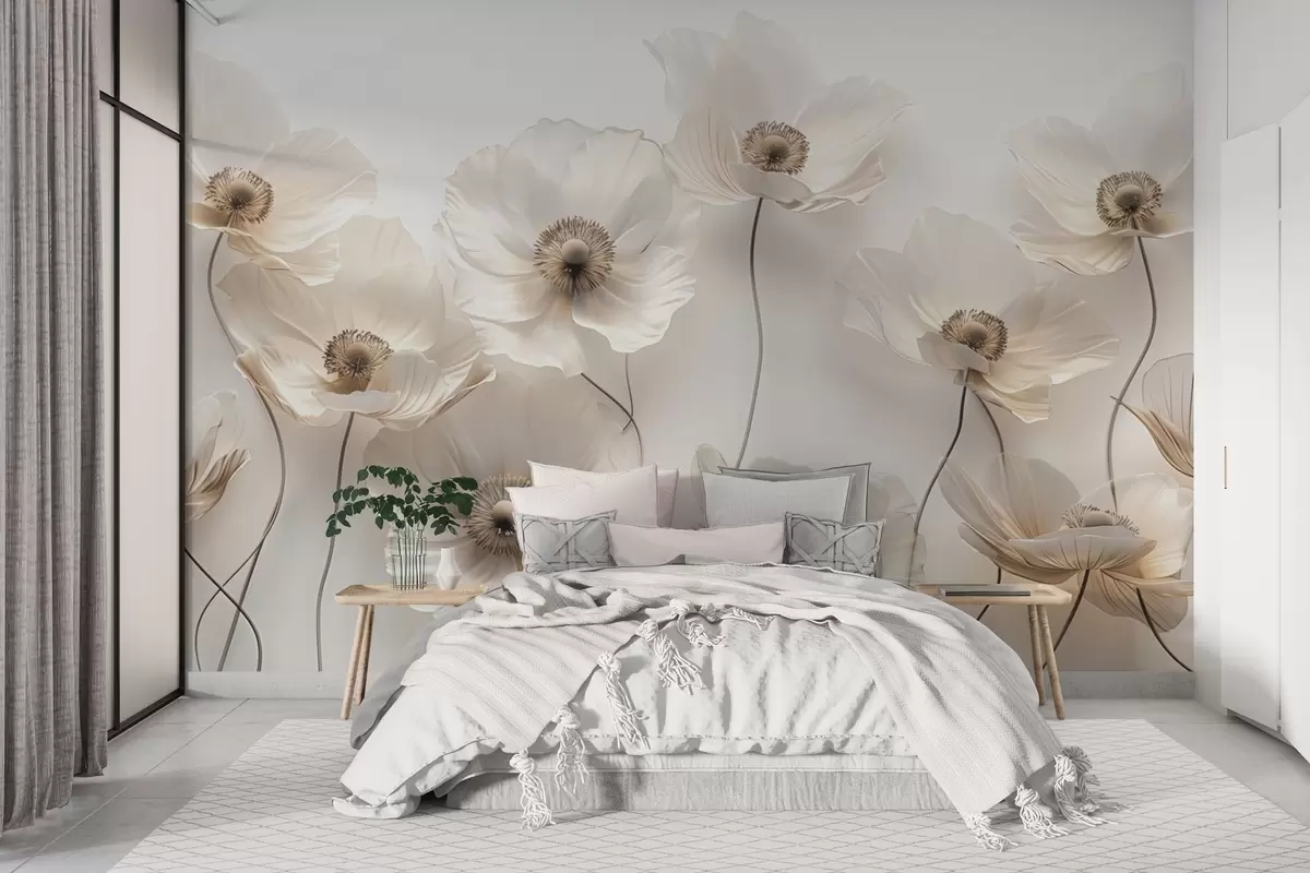 Fototapety Jemné květiny v pastelových béžových odstínech Č. w03518