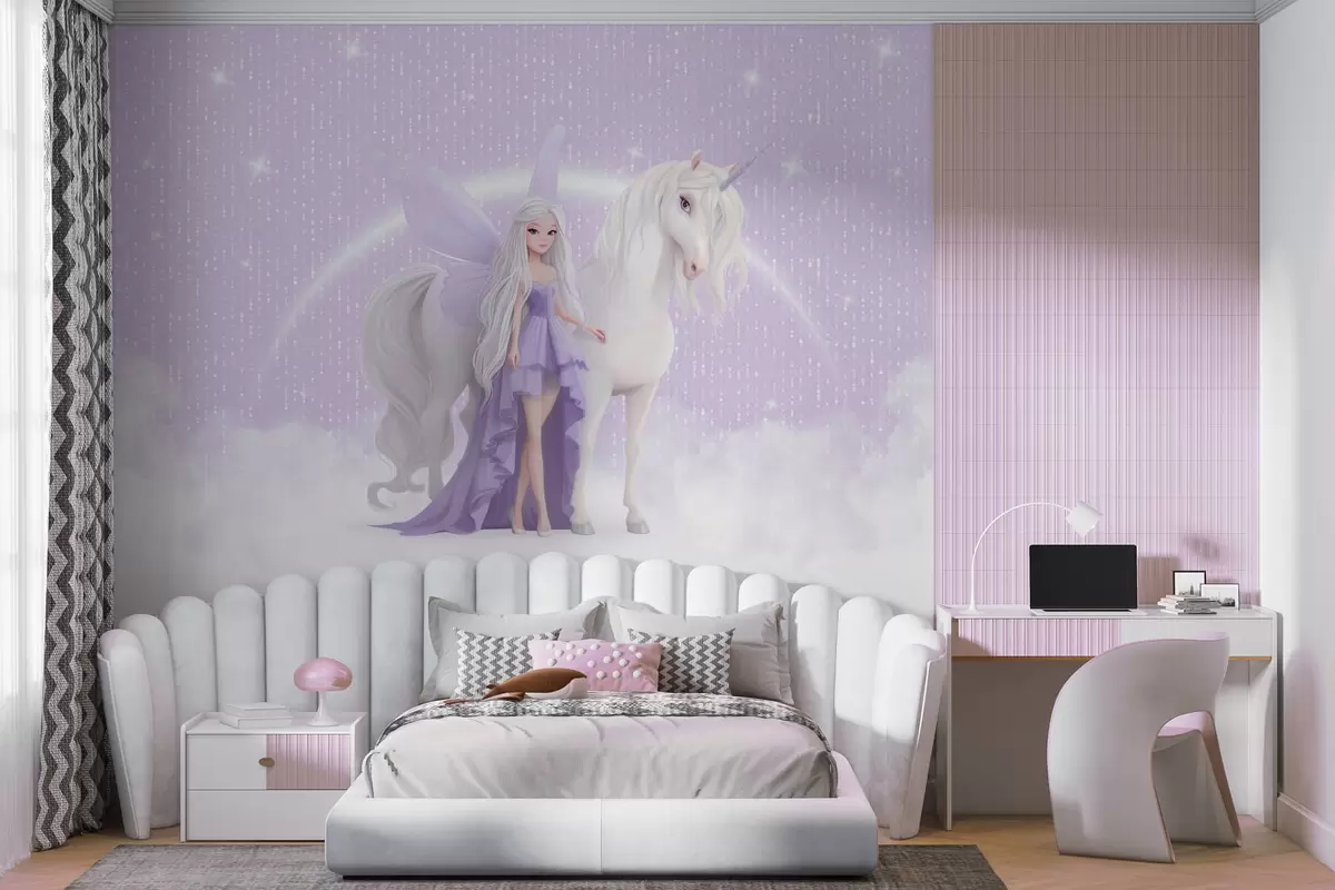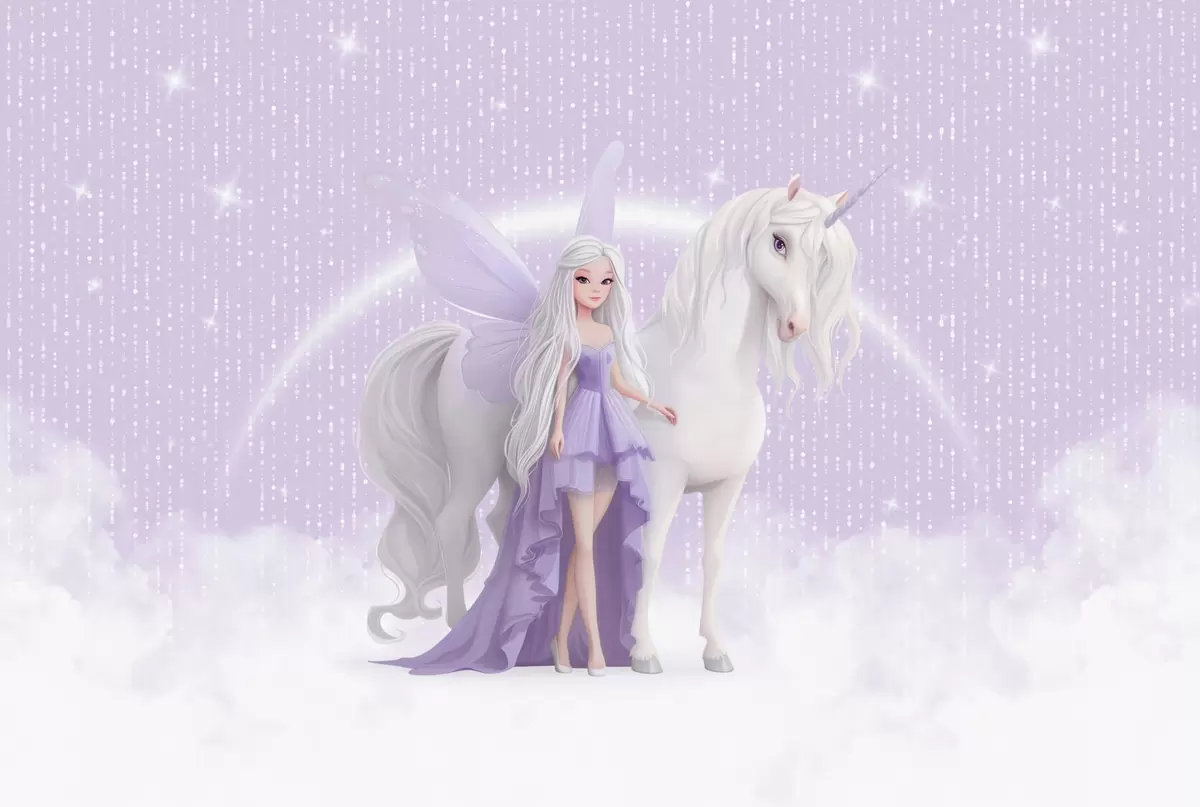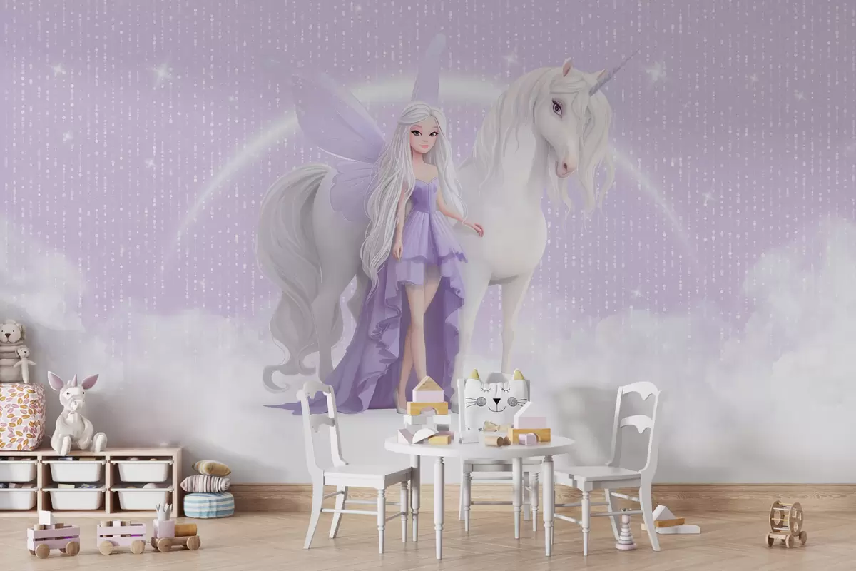 Fototapety Víla s jednorožcem mezi mraky Č. w03527