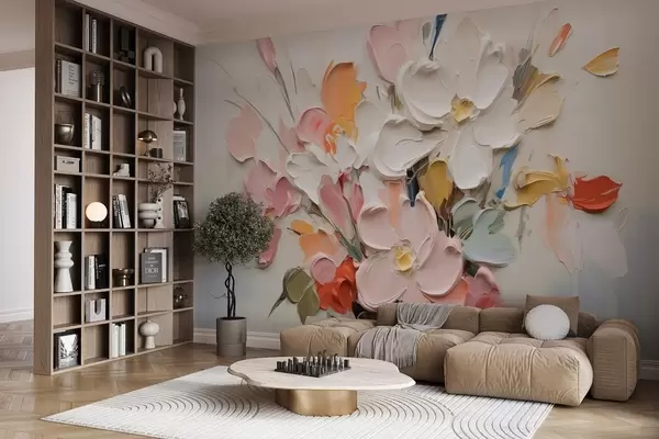 Fototapety Abstraktní objemové květiny ve stylu olejomalby Č. w03582