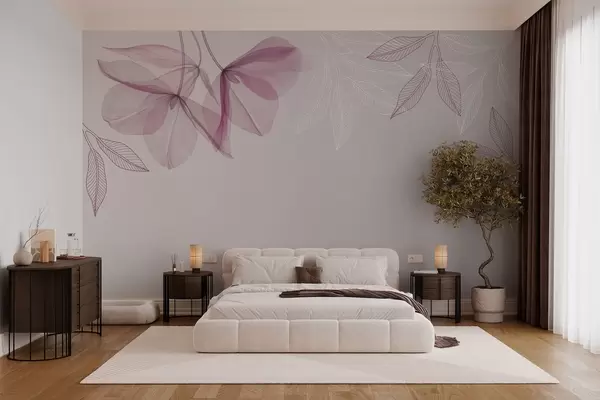 Fototapety jemné průsvitné květy a listy ve fialových odstínech Č. w03616v4