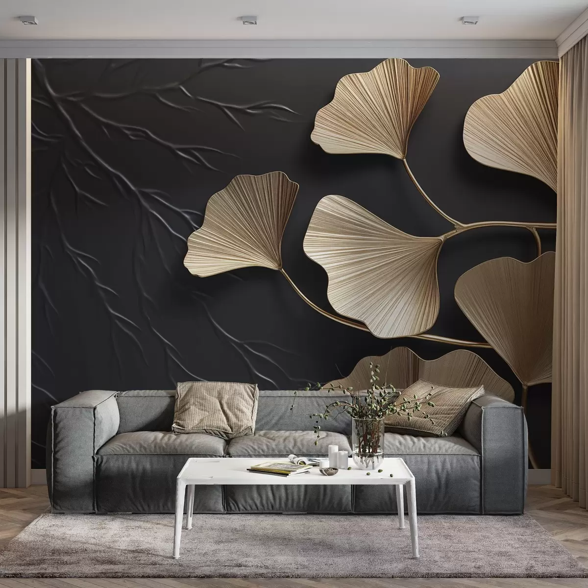 Fototapety Objemová zeleň na tmavé stěně Č. w03650v1