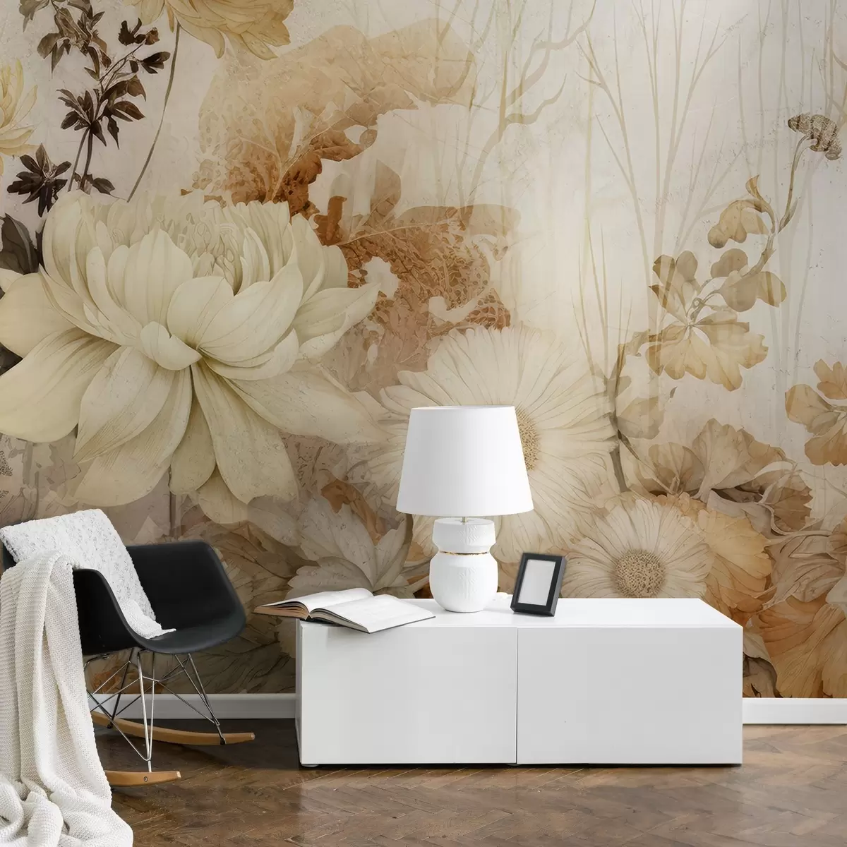 Fototapety Vintage květiny na staré popraskané zdi Č. w03654