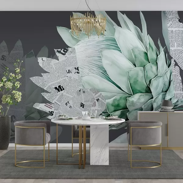 Fototapety Protea květiny, noviny umění, květinové, tropické, tmavé pozadí, zelené barvy Č. w03667v3