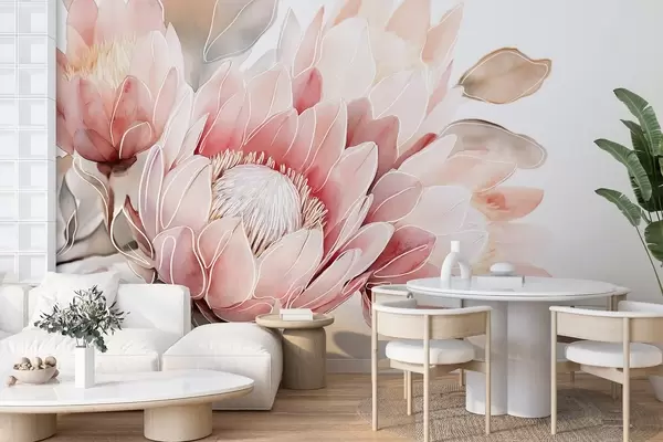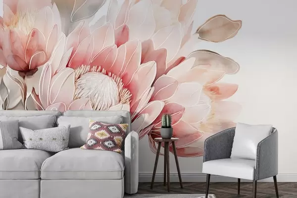 Fototapety Krásné květy protea, kresba, tropické, přírodní barvy Č. w03669